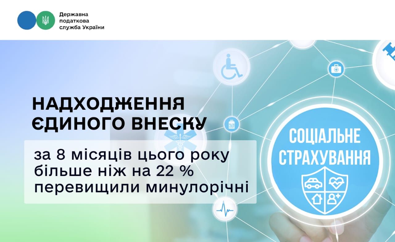 За січень – серпень 2025 року платники перерахували 423,5 млрд грн єдиного внеску на загальнообов’язкове державне соціальне страхування. Це на 22,3 %, або на 77,2 млрд грн більше за відповідний показник минулого року.