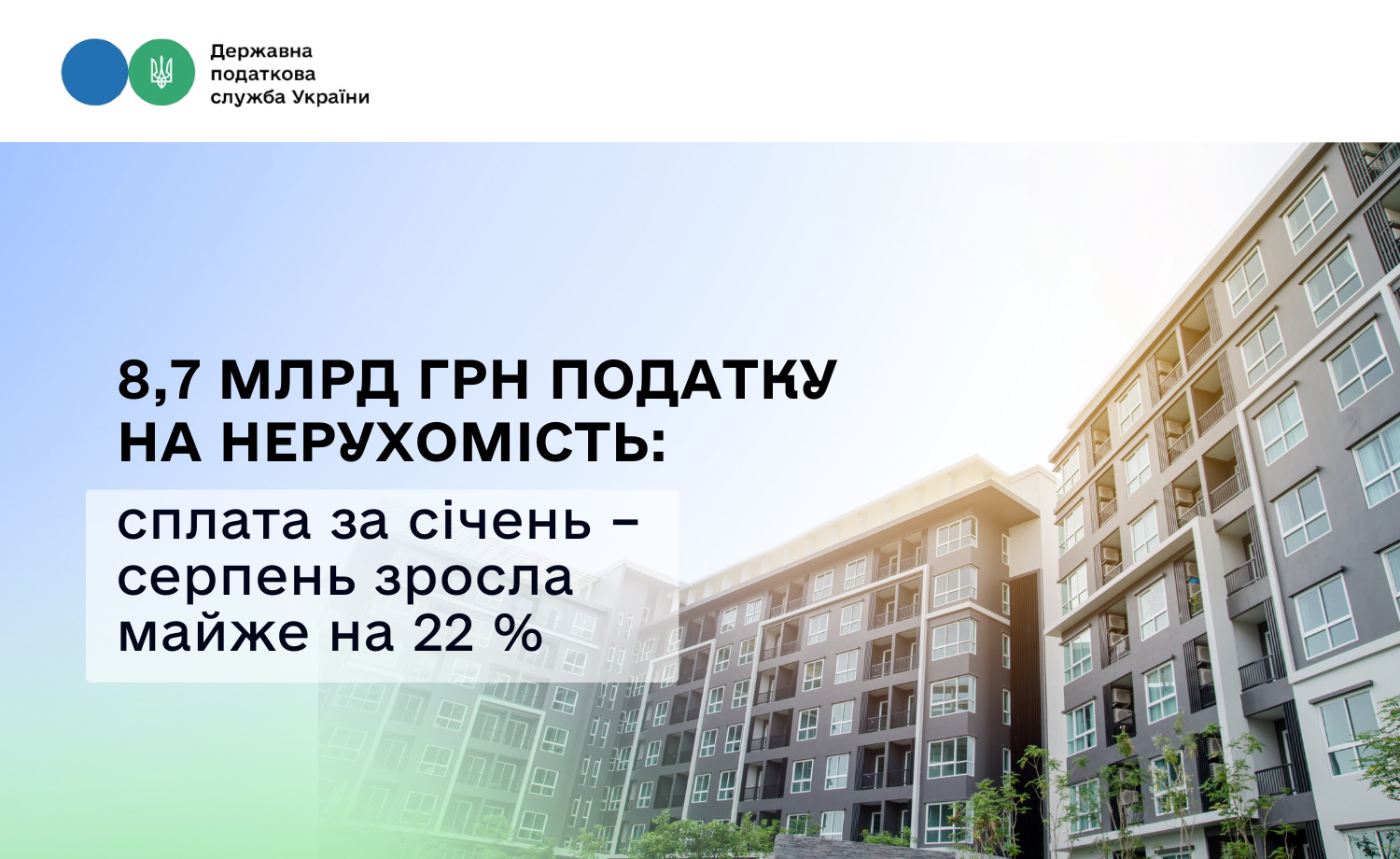 8,7 млрд грн податку на нерухомість: сплата за січень – серпень зросла майже на 22 %