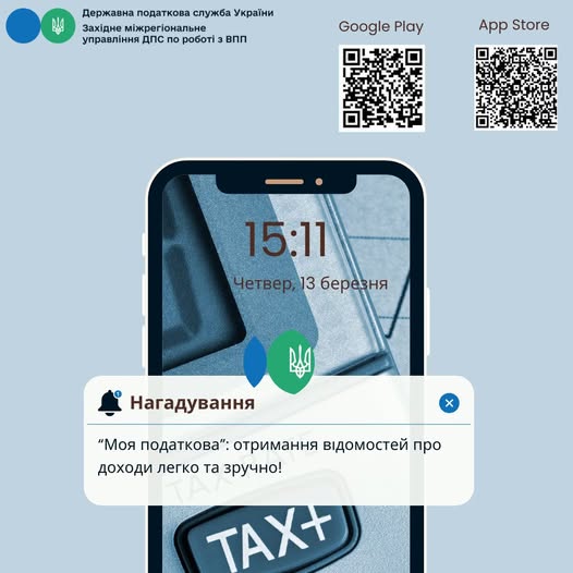 Західне міжрегіональне управління ДПС по роботі з великими платниками податків нагадує про зручний та доступний додаток "Моя податкова".
