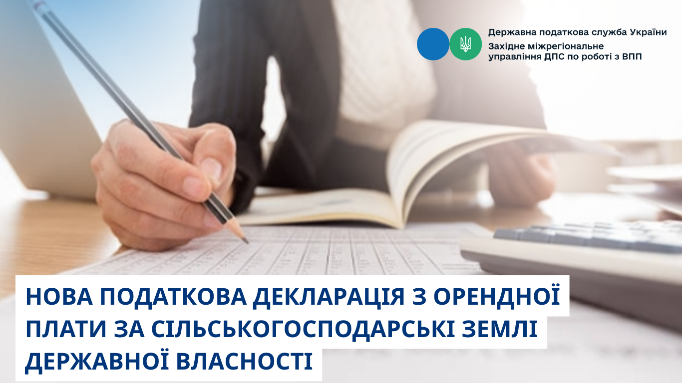 Західне міжрегіональне управління ДПС по роботі з великими платниками податків нагадує, що з 1 січня 2026 року запроваджується нова форма податкової декларації з орендної плати за земельні ділянки сільськогосподарського призначення державної власності.