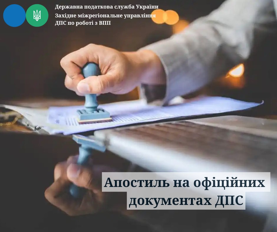 Проставлення апостиля на офіційних документах, що видаються ДПС та її територіальними органами, здійснюється Державною податковою службою України відповідно до Правил проставлення апостиля на офіційних документах, призначених для використання на території інших держав, затверджених наказом МЗС, МВС, МОН, Мінфіну, Мін’юсту від 17 березня 2023 року № 125/209/293/139/999/5 та зареєстрованих у Міністерстві юстиції України 21.03.2023 року за № 478/39534 (далі – Правила).
