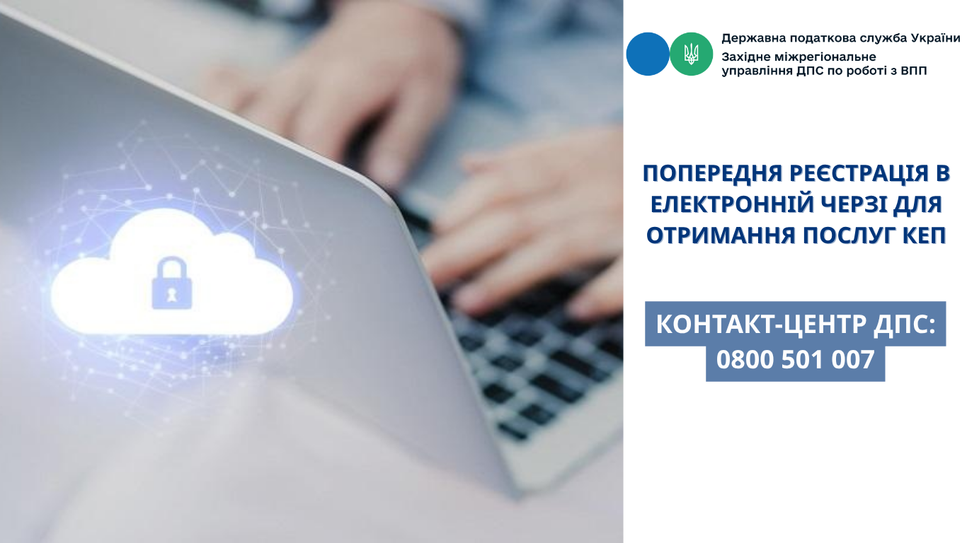 Західне міжрегіональне управління ДПС по роботі з великими платниками податків повідомляє, що відтепер записатися онлайн в електронну чергу для отримання послуг КЕП можна через офіційний вебсайт КНЕДП ДПС - https://ca.tax.gov.ua в розділі «Електронна черга».