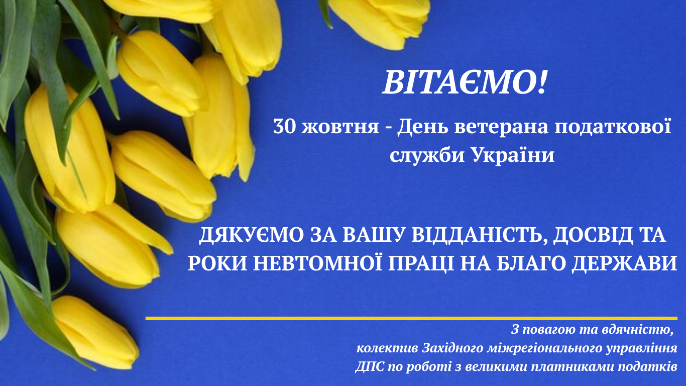 Вітаємо! 30 жовтня — День ветерана податкової служби України!