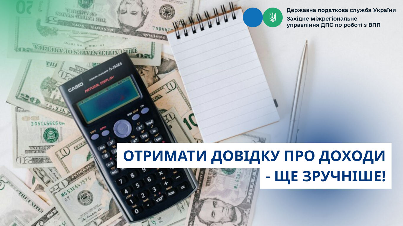 Західне міжрегіональне управління ДПС по роботі з великими платниками податків інформує про простий, зручний та доступний спосіб отримання відомостей про доходи.