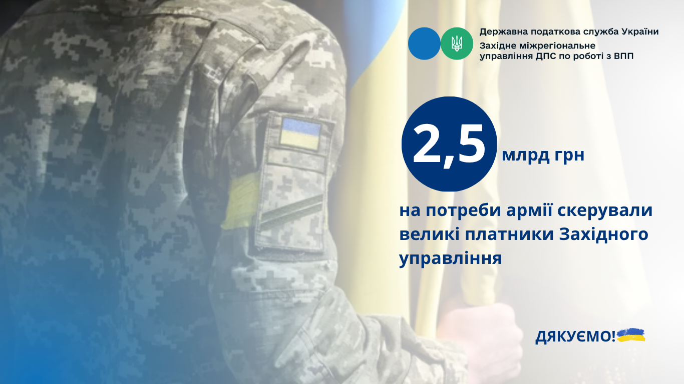 2,5 млрд грн на потреби армії скерували великі платники Західного управління