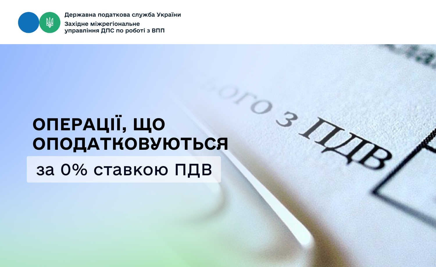 Західне міжрегіональне управління ДПС по роботі з ВПП нагадує, що за ставкою «0» відсотків ПДВ оподатковуються операції, що здійснюються особами, які зареєстровані як платники ПДВ, а саме операції з: