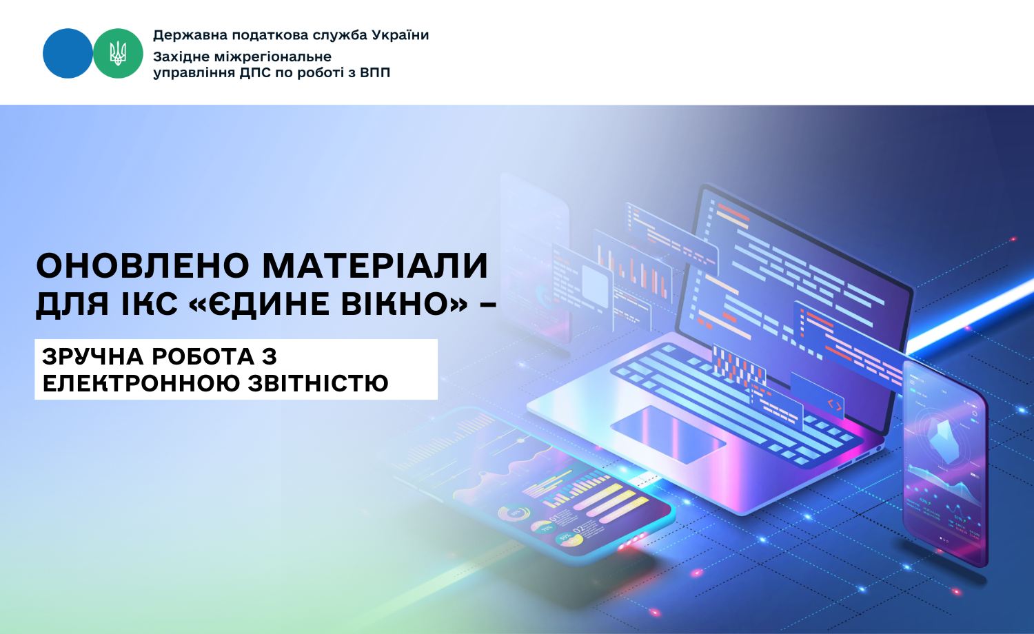 Західне міжрегіональне управління ДПС по роботі з ВПП інформує про актуалізацію та розробку нових методичних матеріалів щодо роботи в інформаційно-комунікаційних системах, зокрема ІКС «Єдине вікно подання електронної звітності». Оновлений інструктивний матеріал підготовлено для підвищення зручності користування системою та забезпечення доступу до всіх її актуальних функціональних можливостей.