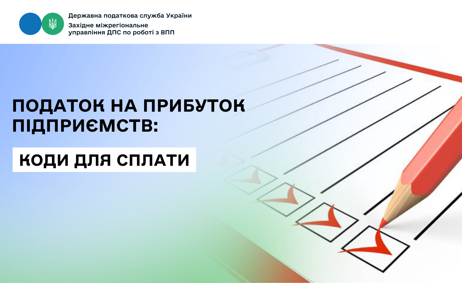 Західне міжрегіональне управління ДПС по роботі з великими платниками податків нагадує, що відповідно до наказу Міністерства фінансів України від 14.01.2011 р. № 11 «Про бюджетну класифікацію» (в редакції наказу Міністерства фінансів України від 13.11.2025 р. № 871) податок на прибуток підприємств сплачується (перераховується) платниками за кодами класифікації доходів бюджету: