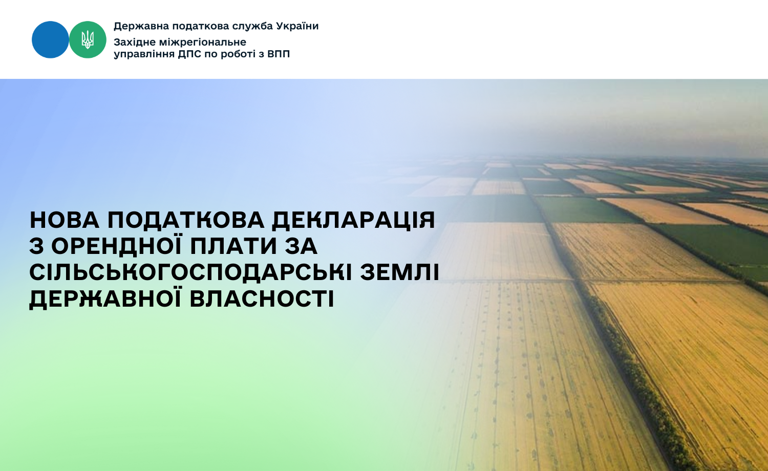 Західне міжрегіональне управління ДПС по роботі з великими платниками податків нагадує, що з 1 січня 2026 року запроваджується нова форма податкової декларації з орендної плати за земельні ділянки сільськогосподарського призначення державної власності.