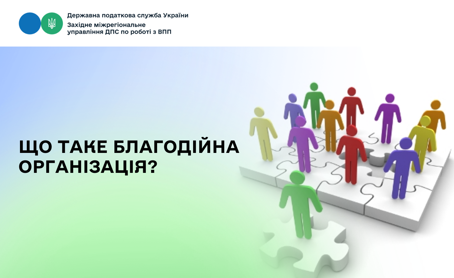 Західне міжрегіональне управління ДПС по роботі з великими платниками податків інформує, що відповідно до Закону України «Про благодійну діяльність та благодійні організації», благодійна організація - це юридична особа приватного права, установчі документи якої визначають благодійну діяльність в одній або кількох сферах, передбачених цим Законом, як основну мету її діяльності.