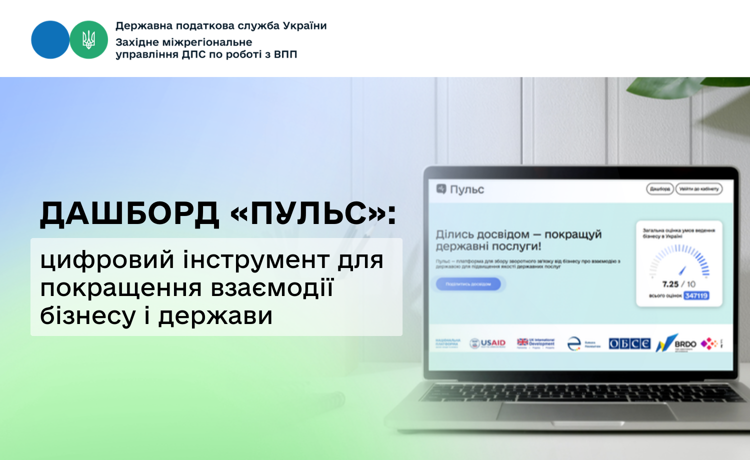 Західне міжрегіональне управління ДПС по роботі з великими платниками податків нагадує, що в Україні запрацював перший публічний аналітичний дашборд платформи «Пульс» – сучасний онлайн-інструмент зворотного зв’язку між бізнесом і органами державної влади.