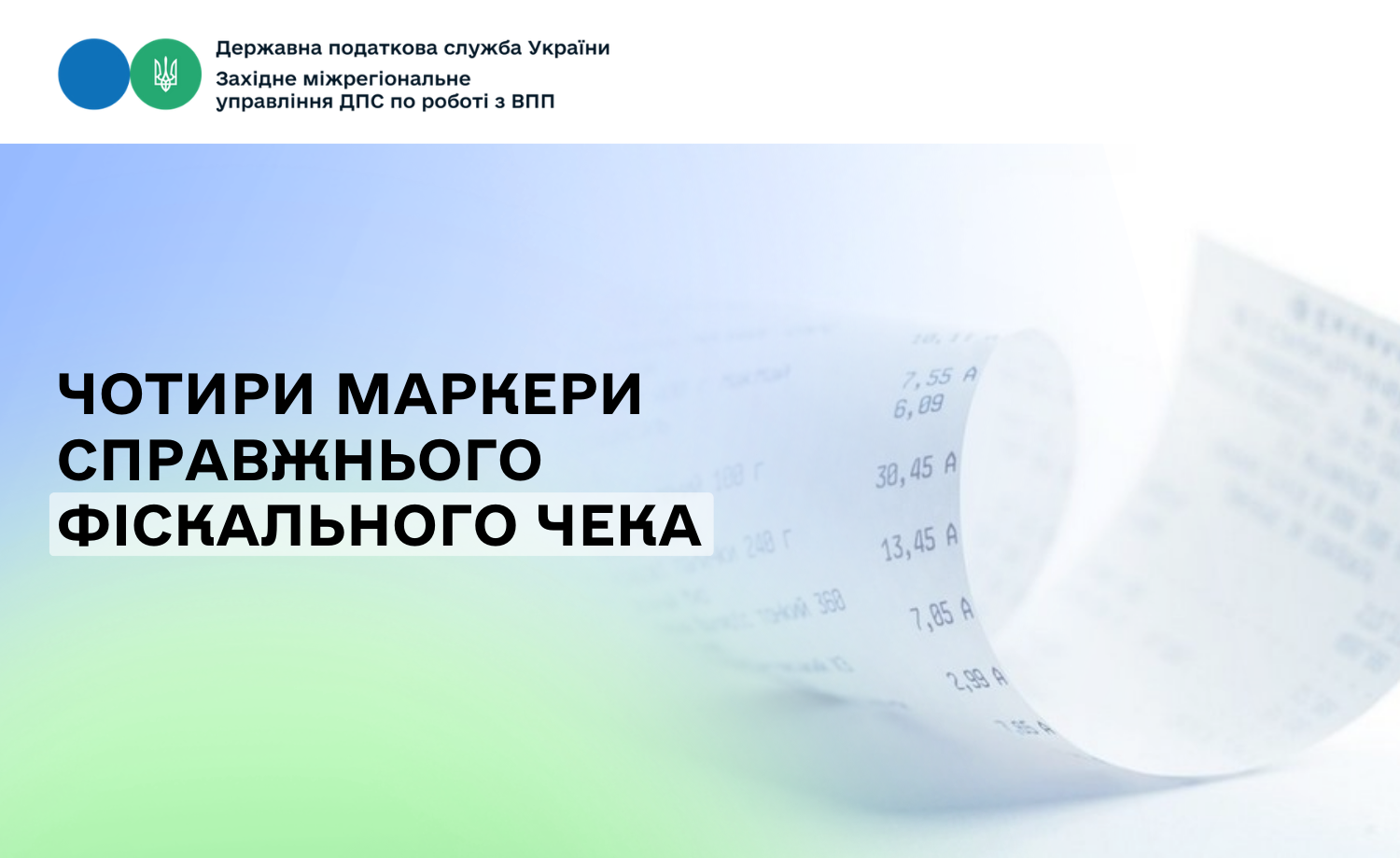 Західне міжрегіональне управління ДПС по роботі з великими платниками податків нагадує про чотири маркери справжнього фіскального чека: