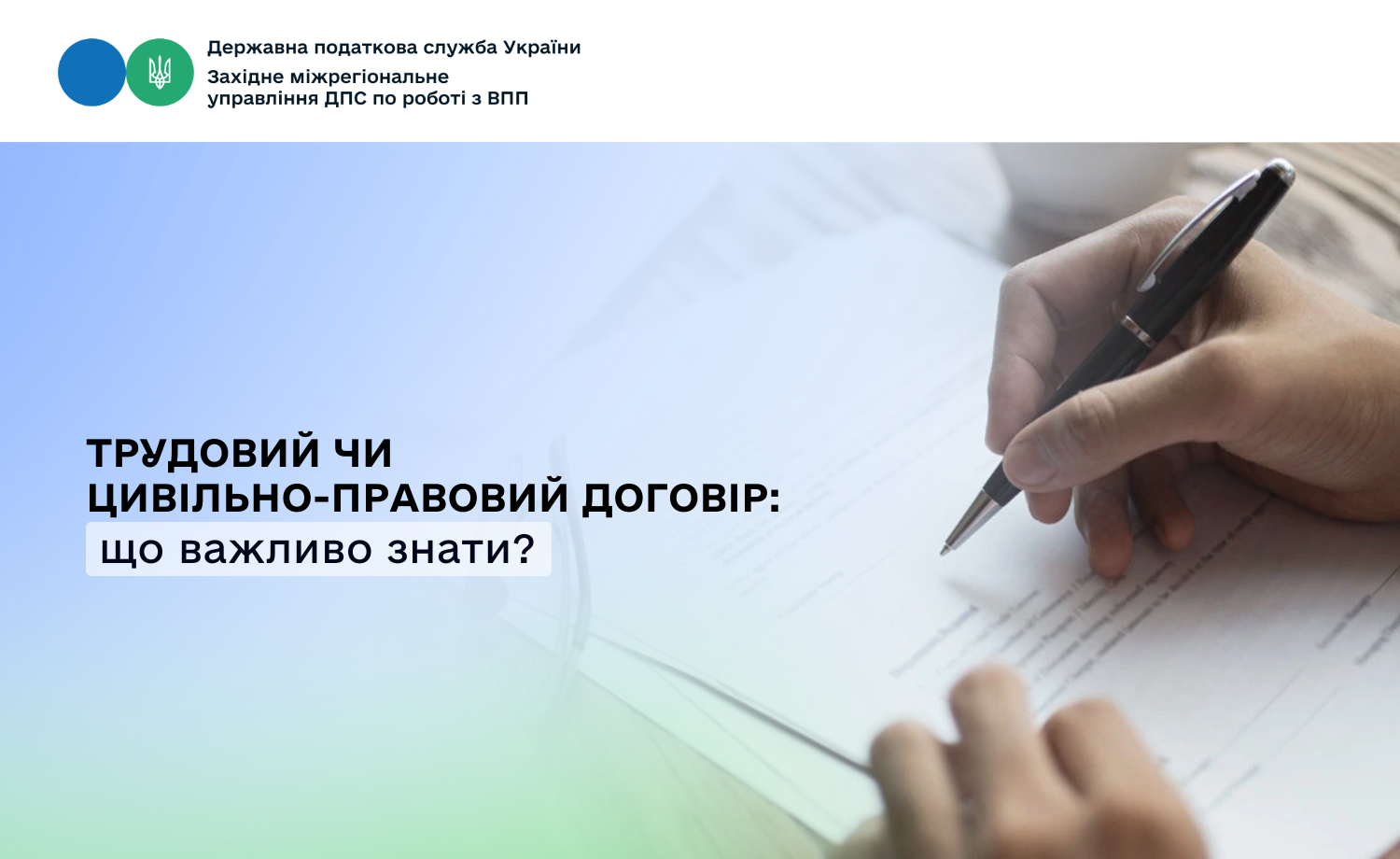 Західне міжрегіональне управління ДПС по роботі з великими платниками податків нагадує платникам податків про ключові відмінності між трудовими та цивільно-правовими договорами.