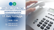 У понеділок, 17 листопада, з 10:00 год по 11:00 год у Західному міжрегіональному управління ДПС по роботі з великими платниками податків працюватиме "Гаряча лінія" з питань порядку сплати платежів та правильності заповнення реквізитів "Призначення платужу".
