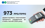 За січень-лютий 2026 року платниками Західного міжрегіонального управління ДПС по роботі з великими платниками податків зареєстровано 973 РРО/ПРРО, з яких 859 - РРО та 114 - ПРРО.